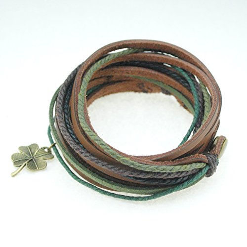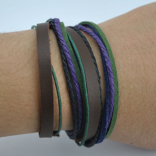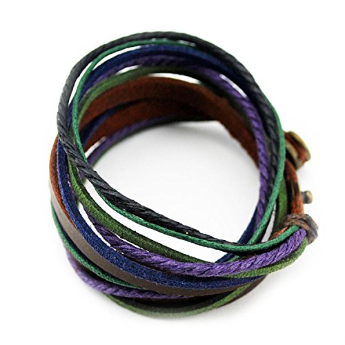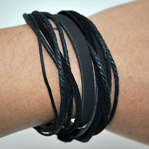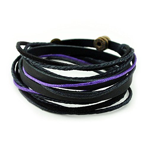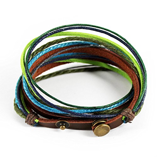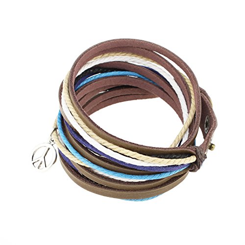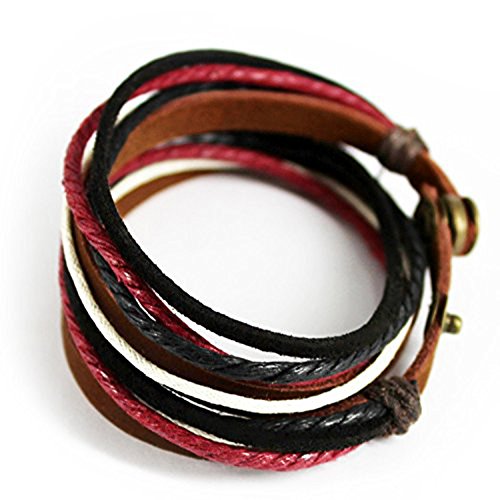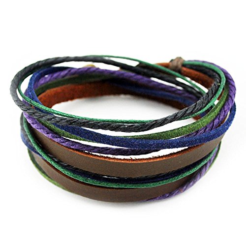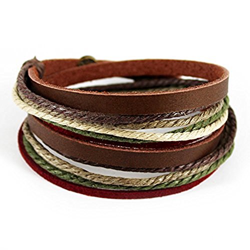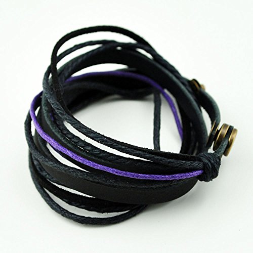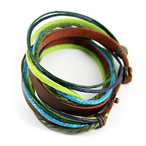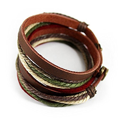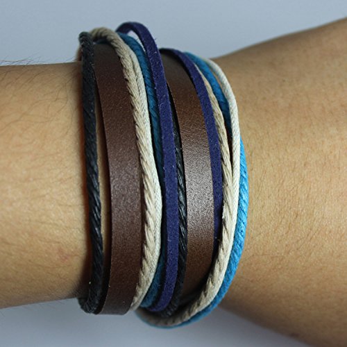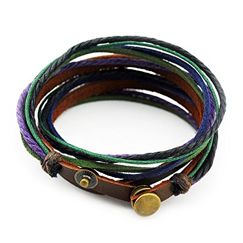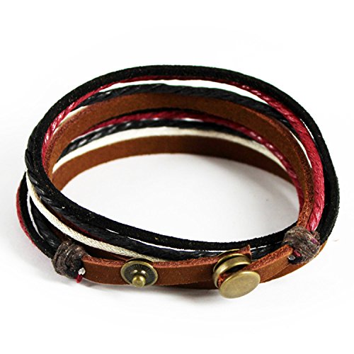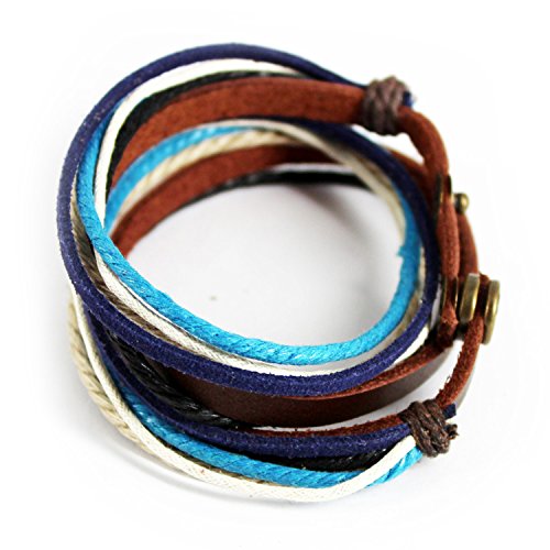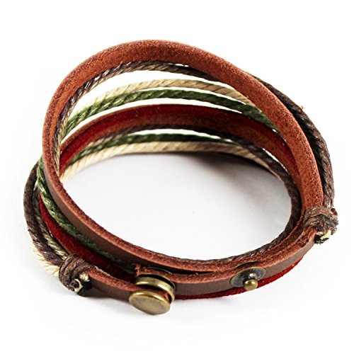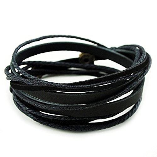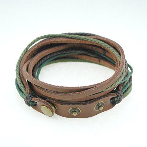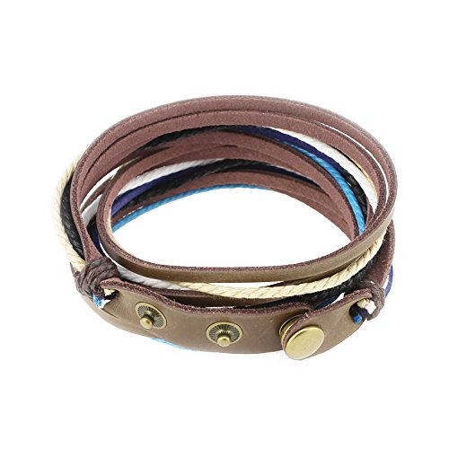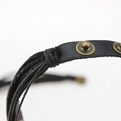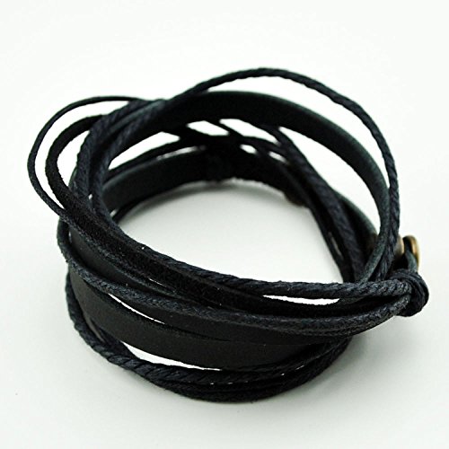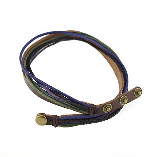 Abbyabbie.Li Unisex Echtleder Manschette Wickel Armband Seil Wristband mit 3 verstellbaren Knopf