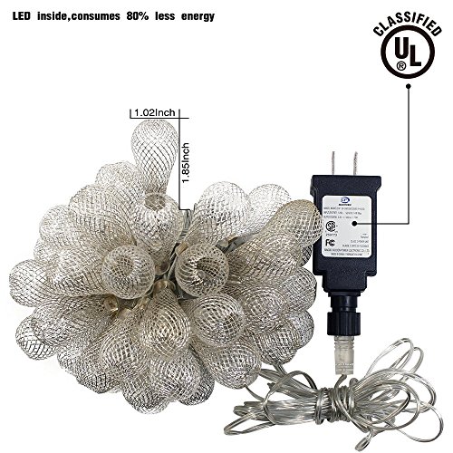 TORCHSTAR 29ft 40 LED Mesh Ball Fairy String Lights LED Christmas Lights, Warm White, Raindrop Ball For Party, Wedding, Holiday, Window Home Decoration Lighting Plug-n-Play w/ UL Power Adapter