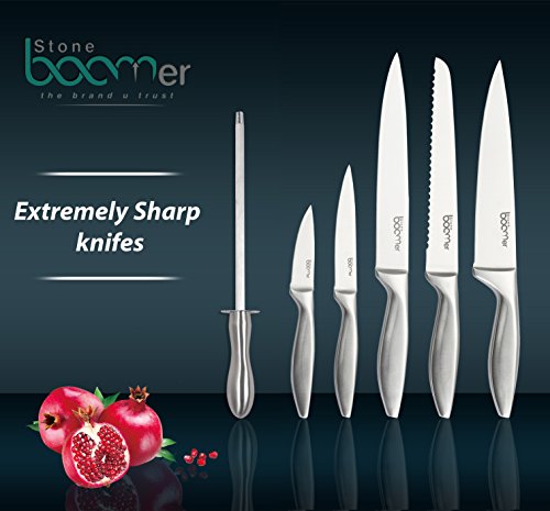 - YOUR BENEFITS! Including with our set you get a sleek sharpener for protecting your knifes and keeping them razor sharp use after use! We are so sure you will be perfectly happy with this set, that we will do anything to make you satisfied. Do not use dishwasher!!