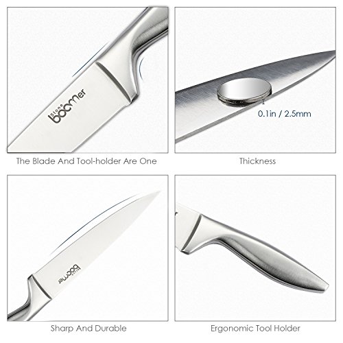 - HIGH QUALITY! Our knives and utensils are made to meet the demands of the pros. It is premium stainless steel, a metal that will never tarnish, rust or corrode. All blades are made with strong heavy duty restaurant grade # 430 stainless steel. Our knife sets comply with certification from FDA, - LFGB, - SGS for the home and commercial use.