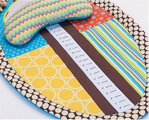 -. Feature : Bolster helps prop baby up for tummy time. / 2 removable, richly textured toys to grasp. / Waterproof fabric inside ,Music rattle , Teether , Safe mirror including / Clever growth chart to measure baby. tall fingue in Inch / Size about length 87 xwide 56 cm