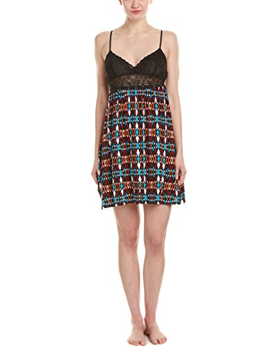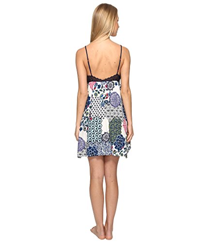 Product DescriptionPrinted chemise with solid lace bodice, v neckline and adjustable elastic straps0