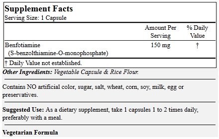 -. Title : Benfotiamine 150mg (120 Vegetarian Capsules)