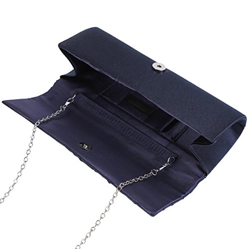 You are definitely a graceful lady in this delicate evening bag! The surface is covered with soft satin. The front is in interlacing pleats design. Simple design makes you good-taste. The flap is fastened with magnetic snap. The capacity is enough for you to carry coin purse, phone or your lipstick. Inside is equipped a small pouch to hold tiny things like key. This bag can be clutched by hands or cross the body with detachable chain. Bag measurement approximately: length 26cm (10.2 inches); width 6cm (2.3 inches); height 9.3cm (3.6 inches); shoulder strap 120cm (46.8 inches).Feature