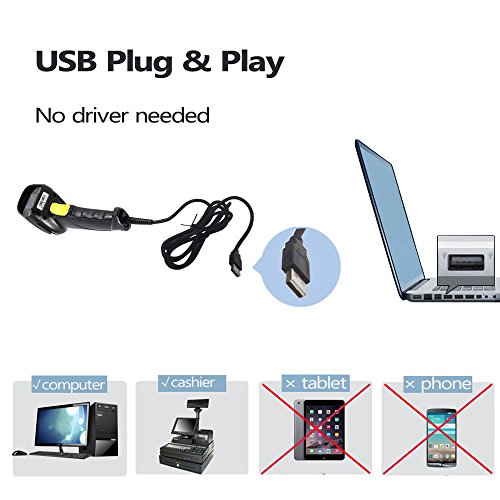 - Plug & Play wired laser barcode scanner,No driver needed,read all the standard 1D bar codes,compatible with Windows, Mac and Linux