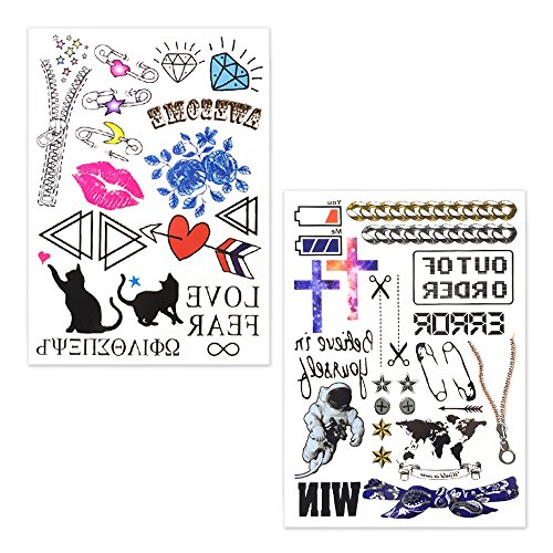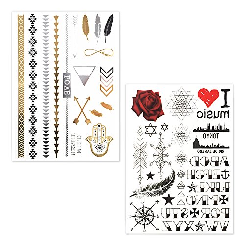 - PREMIUM COLLECTION - mix the classic black, gold, silver metallic and the vivid color tattoos. Over 130+ designs you can choose from!