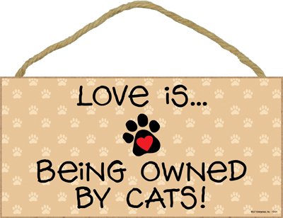 (SJT13121) Love Is Being Owned By Cats! 5" x 10" Wood Plaque Sign