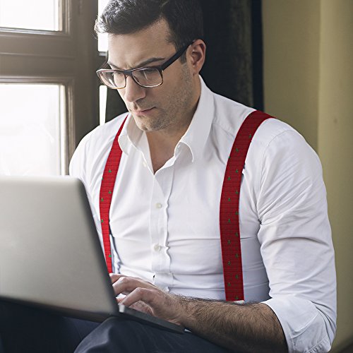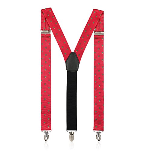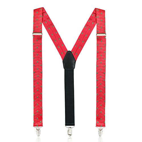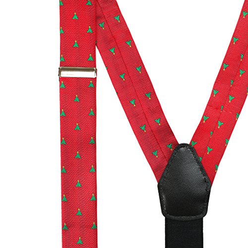 (John William Clothing)/Accessories/Suspenders Cummerbunds/DIRECT FROM USA/Mens Tree Star Christmas Suspenders For Men - Red Holiday Twill Clip Braces