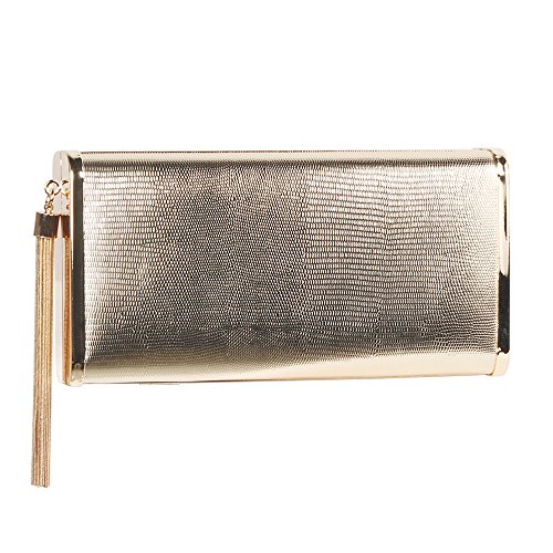 -. Title : M10M15 Women Mettalic Gold Evening Clutch Purse Handbags with Tassel for Party