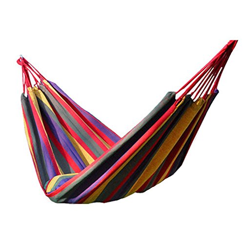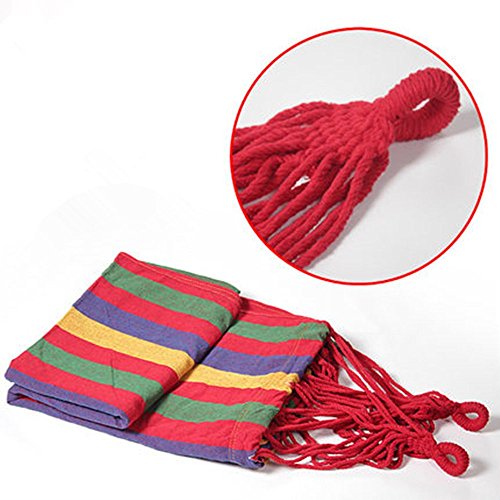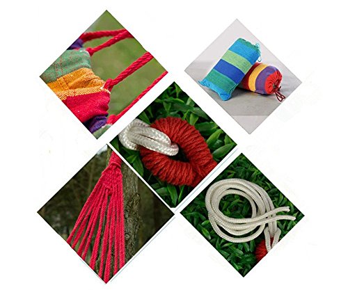 COMFORTABLE HAMMOCK: This camping hammock is made of high density breathable cotton and fabric; Which is super soft and comfortable, and especially safe for your baby. The material has excellent color fastness, so that it will stay strong and clean for years to come. Friends,don't miss chance to own this wonderful outdoor or indoor hammock bed.