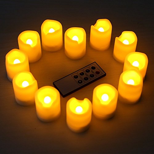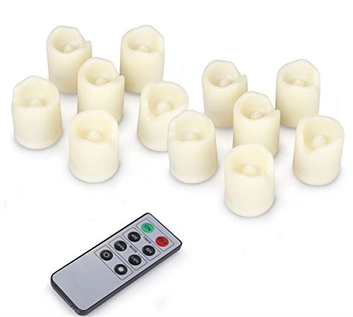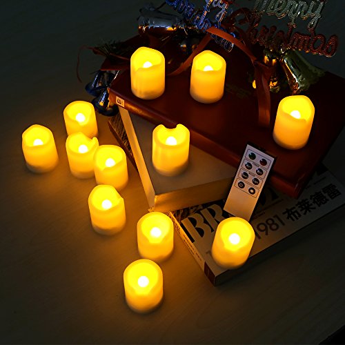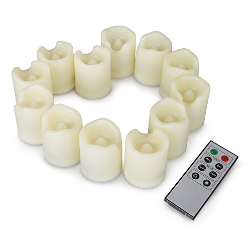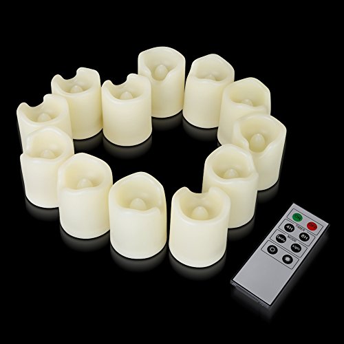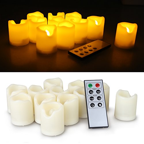 Studio : Kohree Publisher : Kohree Binding : Kitchen Product Description Kohree 12 Indoor and Outdoor Ivory Votive Candles with Remote Control Timer, Flameless Pillar LED Candles Description: The remote control votive candles can be used indoors or outdoors. Enjoy candles without the messy wax and dangerous flames as well as the convenience of the remote control and timer. For these flameless candles, you can have them flickering or straight light, and can choose either dimmer or brighter. The bulbs are made in LED, which is safe and energy-efficient and they change colors, too. This is perfect for those nights when you want to relax and de-stress. Give you the feeling of real candles without worrying about dripping, fires, etc. The remote control lets you use the flameless candles in hard to reach areas such as tall shelves or even chandeliers, lanterns. Features: Suitable for anniversary, marriage proposal, outdoor candlelit banquets, promotional products, hotels, bars, home decoration, church, Christmas Requires 1 x CR2450 Battery per candle (included) Notes: 1.One set of batteries lasts approx. 200 hours with typical use (depending on the quality of the batteries). 2.Timer function: can turn the candles off after either 4 hours or 8 hours, but no auto on. 3.If your remote control can't work, please take out the remote¡?s battery and re-install it, sometime the battery connection problem occurs on the remote control. Specification: Material: plastic, unscented Power Source: battery-powered Type of bulb: Built-in color changing LED light Diameter: approx.1.5 inches Remote control range: within 20 foot Box Dimension: 22x15x5.4cm Package includes: 12xIvory Flameless Votive Candles (Batteries Included) 1xRemote control