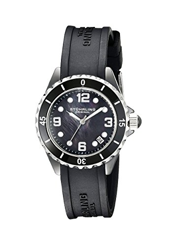 -. Binding : Watch -. Brand : Stuhrling Original -. Color : black -. Department : womens -. EAN : 0847988019774 -. Feature : Black ceramic tenneau shape case with stainless steel case back and protective kysterna crystal on front / 316l surgical grade stainless steel unidirectional ratcheting bezel with screw down crown / Black mother of pearl dial with arabic numerals and round shape markers and a date window / Black silicon rubber strap with silvertone tang buckle / Water resistant to 99 feet (30 M): withstands rain and splashes of water, but not showering or submersion -. IsAdultProduct : 0 -. Label : Stuhrling Original -. Manufacturer : Stuhrling Original -. Model : 954.12B627 -. MPN : 954.12B627 -. PackageQuantity : 1 -. PartNumber : 954.12B627 -. ProductGroup : Watch -. ProductTypeName : WATCH -. Publisher : Stuhrling Original -. ReleaseDate : 2012-06-22 -. SKU : B008EFO7IE -. Studio : Stuhrling Original -. Title : Stuhrling Original Women's 954.12B627 Seraph Quartz Date Black Mother-Of-Pearl Dial Watch -. UPC : 847988019774