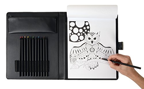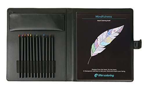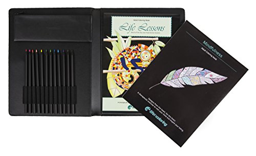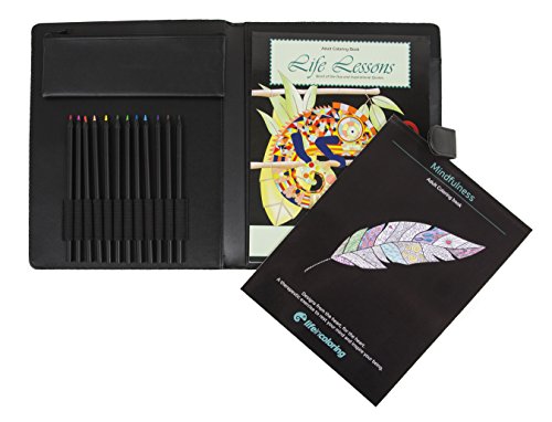 Adult Coloring Books and Colored Pencils 15 PC Kit Unique, Portable, Refillable Design for Travel - Complete Set with Sharpener in Black Carrying Case - Mindfulness and Inspiration - Great Present