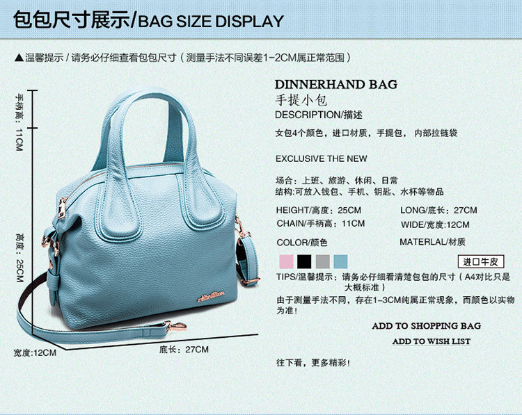 包包尺寸:长27cm 宽12cm 高25cm 手提11cm