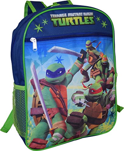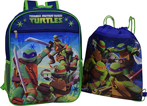 -. Brand : Ninja Turtles -. Color : Navy Blue-Green -. Department : boys -. EAN : 0700118155783 -. Feature : Made of an easy to clean and very durable polyester cordura fabric. Sling bag is made of non-woven material / This set includes: one backpack and one bonus sling bag. Both of them with amazing Ninja Turtles design / Backpack features one large zippered compartment for binder, books and folders, two net side pockets and one front zipper pocket / Adjustable padded shoulder straps for additional comfort / Backpack dimensions: 15"H x 11.5"W x 4.5"D. Bonus Sling bag dimensions: 13.7"H x 11"W x .25"D -. PackageQuantity : 2 -. ProductGroup : Apparel -. ProductTypeName : LAGE -. Size : Large -. Title : TMNT Ninja Turtles 15" School Bag Backpack With Bonus Ninja Turtles Sling Bag -. UPC : 700118155783