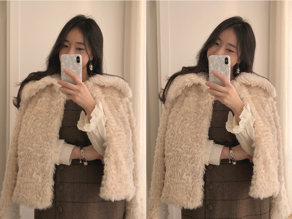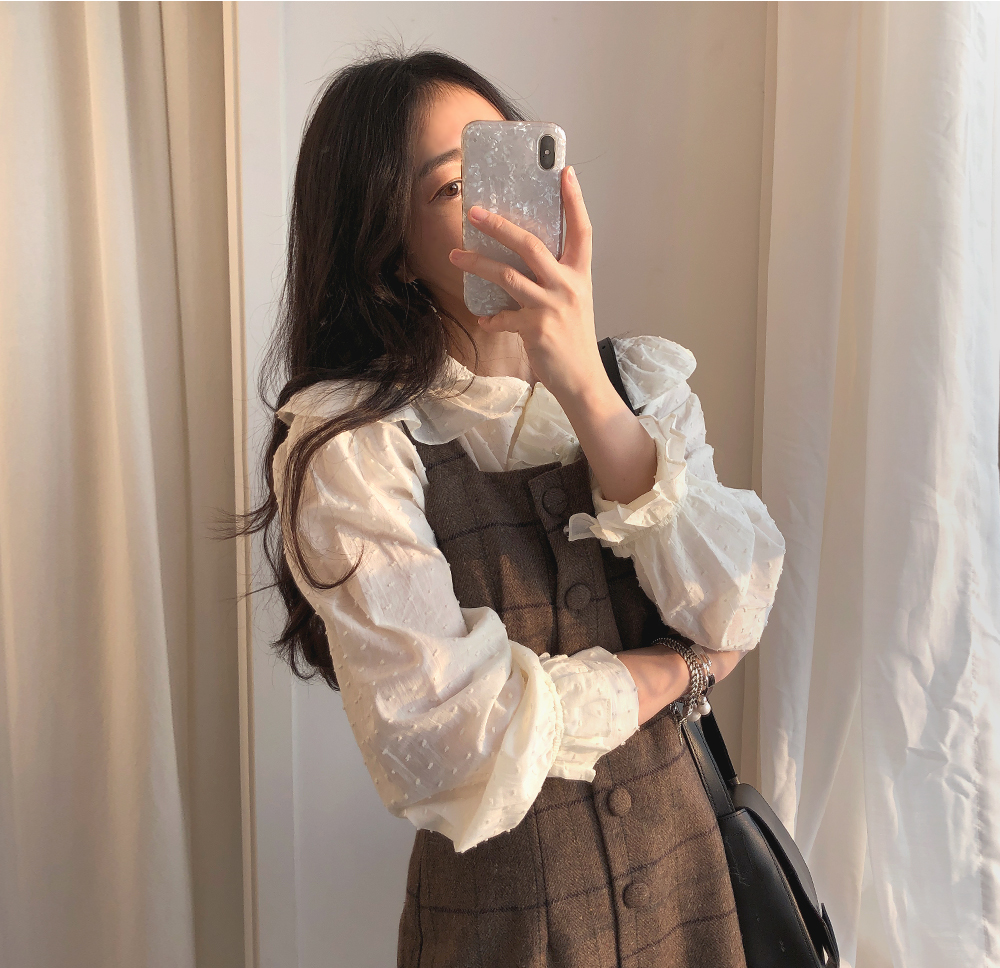 소매끝에도 프릴을 더해 여성스러움을 업시켰으며