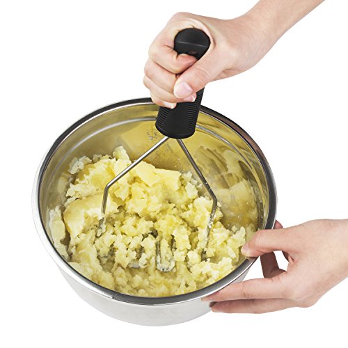 Studio : DRAGONN Publisher : DRAGONN Product Description Product Description These innovative Potato Mashers lets you make smooth mashed potatoes with less pressure on your hands. A broad, soft, horizontal handle lets you press straight down while it cushions your grip and absorbs pressure. A fine-grid, stainless steel mashing plate yields smooth mashed potatoes with no lumps. This tool is not just for potatoes! Try mashing yams, carrots, or other root vegetables, or make homemade baby food by mashing apples or bananas. 0