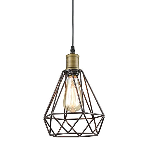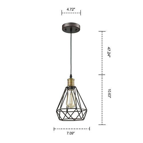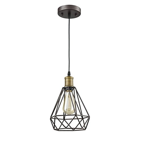 YOBO Lighting Vintage Oil Rubbed Bronze Polygon Wire Pendant Light Art Deco
