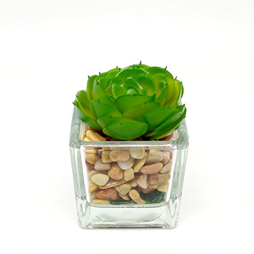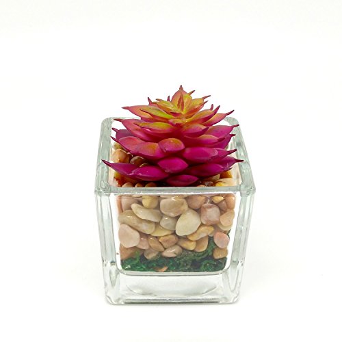 This set of 4 small glass cube artificial succulent planters would be perfect for any table, shelf, counter, or window sill, and will never die! They are bright and realistic, and come in an assortment of 4 different types.
