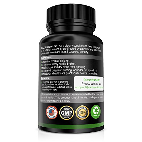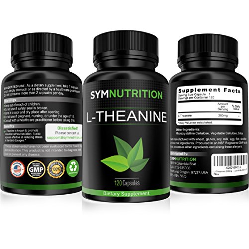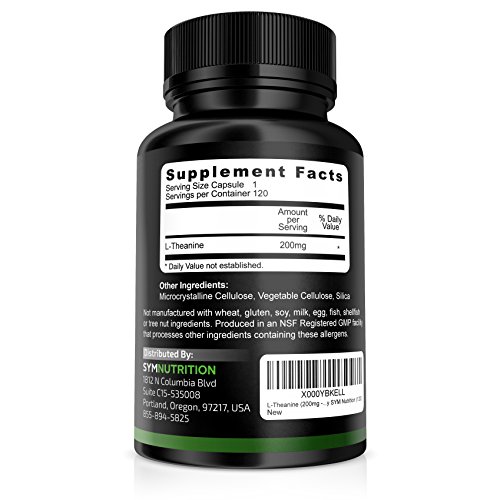 -. Title : L-Theanine (200mg) - 120 Count ● Effective for Stress Relief, Focus and Relaxation ● Vegetarian Capsules of Exceptional Purity - By SYM Nutrition