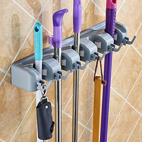 Kadaon Mop and Broom Holder / Magic Holder, 5 Positions with 6 Hooks