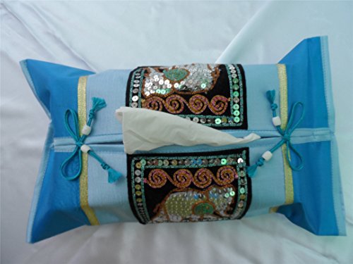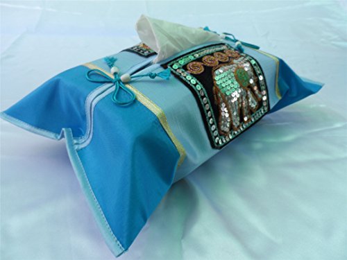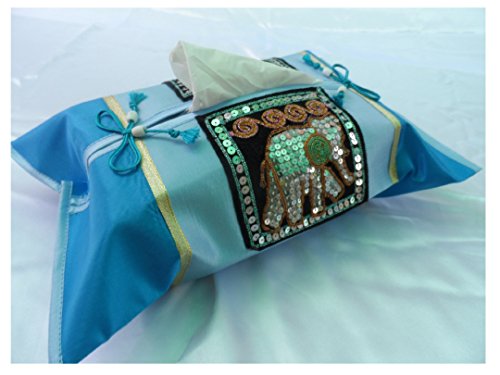 Birthday or Housewarming Christmas Gift Idea - Thai Silk Tissue Box Cover Holder (Blue) with Elephant - Thai Silk/Standard Size