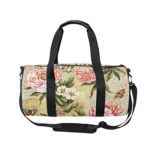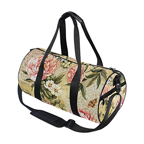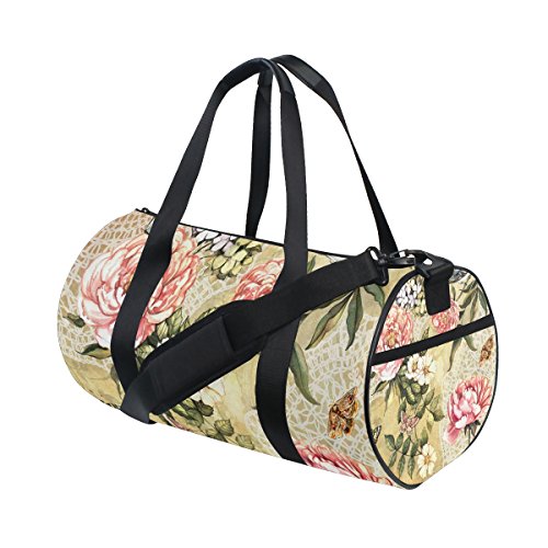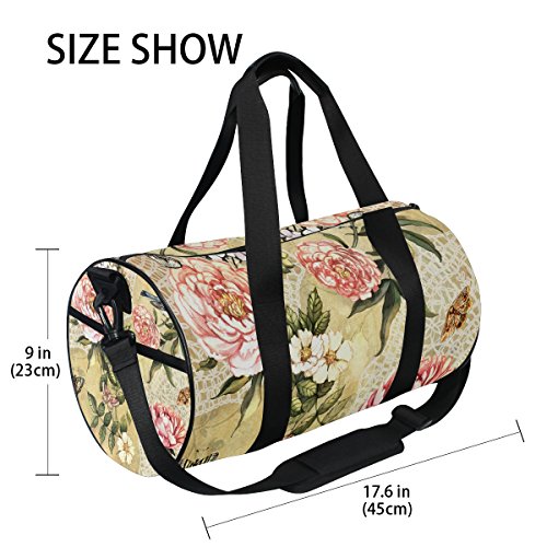(AURELIOR)/Accessories/Luggage, Bags Travel/DIRECT FROM USA/AURELIOR Vintage Watercolor Floral Pattern Gym Duffle Bag Drum tote Fitness Shoulder Handbag Me...