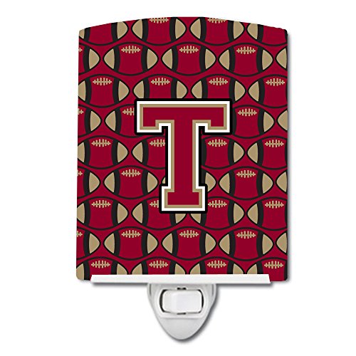 Caroline's Treasures Letter T Football Garnet and Gold Ceramic Night Light, 6 x 4", Multicolor