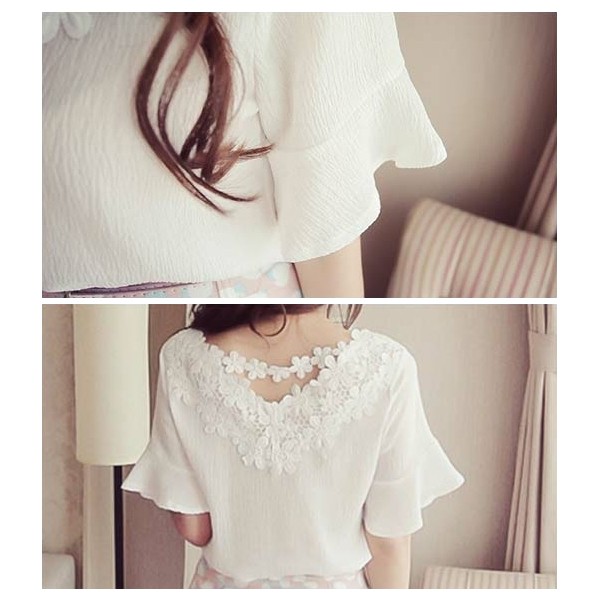 | 商品名 | Vネック 花柄レース フレア袖 シフォントップス |