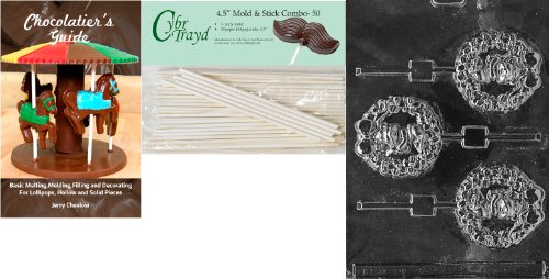Cybrtrayd 'Bear in Wreath Lolly' Christmas Chocolate Candy Mold with 50 4.5-Inch Lollipop Sticks and Chocolatier's Guide