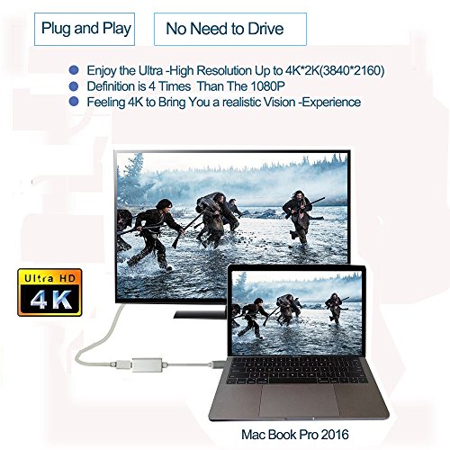 ★EASY USE No installation extend drivers or power required; Portable USB C adapter is lightweight to carry in your laptop bag when traveling; Low-profile and reversible USB Type C connector clicks into place for a snug and secure connection(NOTICE:we suggest do not use a Thunderbolt cable, but use a mini displayport is OK.( since a Thunderbolt cable is a little different)