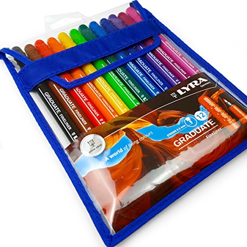 -. Feature : Pack of 12 assorted coloured Graduate Fineliners from Lyra. / Perfect for drawing, detailed colouring, writing, and underlining. / Comes in a handy plastic wallet, making the set ideal for taking to school and college. / Feature water-based inks, and synthetic, non-deformable nibs, for precise and clean strokes. / Made in Italy.