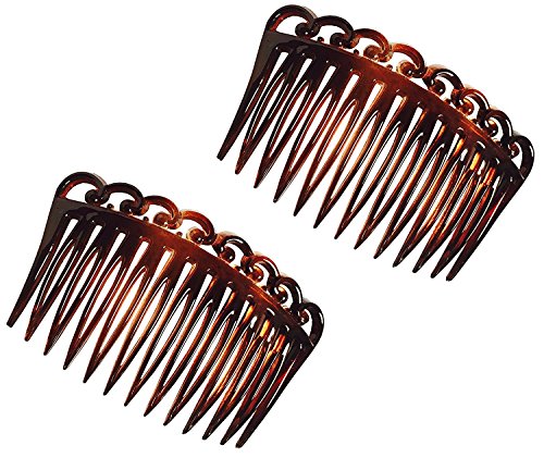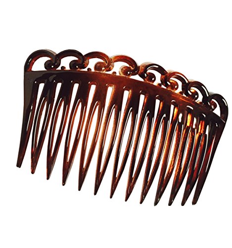 Parcelona French Swirl Set of 2 Celluloid Acetate Brown Tortoise Shell Side Hair Combs 2 Pcs