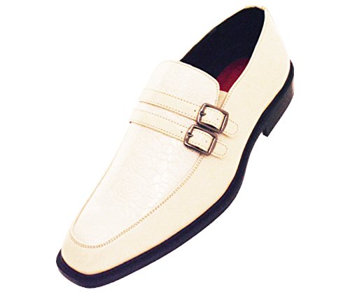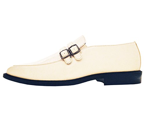 Bolano Mens Ice / Cream Smooth Double Monk Strap Dress Shoe with Glossy Exotic Printed Vamp: Ma...