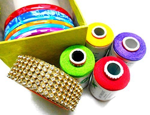 -. Title : GOELX Silk Thread Jewelery-Making Fully Loaded Box With All Accessories. threads colorful Bangles,decorative chains,flower ear studs,all findings,stone lace,spacers,earring bases and lot more!!