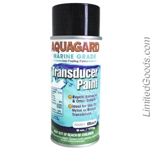 Studio : Aquagard Publisher : Aquagard Binding : Sports Product Description AQUAGARD TRANSDUCER PAINT - BLACK6 oz - 72201Transducer PaintMarine Grade Anti-Fouling Paint Ideal for Nylon or Bronze Transducers.Provides a barrier to inhibit the growth of algaeIdeal for use on nylon or bronze transducersAids in improving depth sounder and fish finder performanceEasy application, just spray and let dryHelps protect expensive electronicsRepels barnacles6 oz. can 0