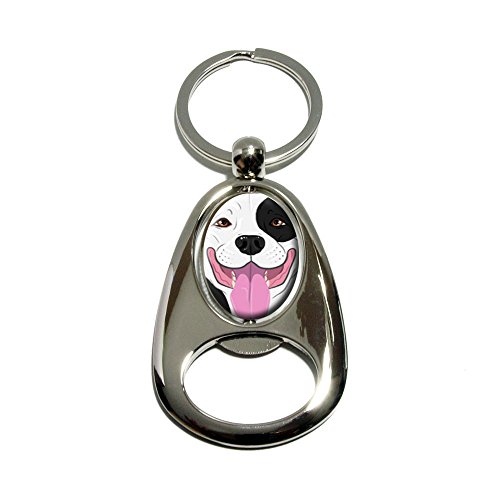 -. Title : Pit Bull Black White - Pitbull American Staffordshire Terrier Dog Pet - Chrome Plated Metal Spinning Oval Design Bottle Opener Keychain Key Ring