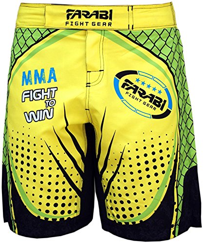 -. Title : Farabi MMA Boxing Kickboxing Muay Thai Mix Martial Arts Fighting Training Gym wear Clothing Shorts Trunks (Yellow/Green, S)