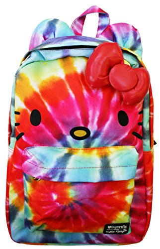 *The tie dye print and Hello Kitty design make this backpack a groovy choice for going back to school *Nylon material features a fun and colorful tie dye print plus Hello Kitty face, ear and bow details *Adjustable shoulder straps *Exterior zipper pocket *Zippered main compartment *Interior laptop sleeve *11.5"Lx5"Dx17.5"HFeature