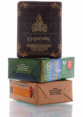- THIS IS PACK OF 3 HERBAL SOAPS. PLEASE READ THE BELOW PRODUCT DESCRIPTION FOR YIELDING THE BEST RESULT FROM THIS UNIQUE SOAP .RINSES OFF CLEAN WITHOUT ANY FORMS OF RESIDUE BOTH ON FACE , HANDS AND THE ENTIRE BODY. THIS MULTIPURPOSE UNCONVENTIONAL WOODASH HANDMADE SOAP HAS CERTAIN PARAMETERS SUCH AS STORAGE, WAY OF USING IT , EXPOSURE TO SUN etc. FOR YIELDING THE POSITIVE RESULTS FROM THE WORLD'S OLDEST MEDICINAL SYSTEM ie: AYURVEDA. We have 24/7 Customer Care! Got questions?