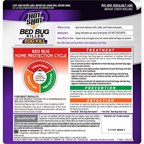 • Kills bed bugs and bed bug eggs by contact. Note: Test inconspicuous sample of fabric or rug for staining before use