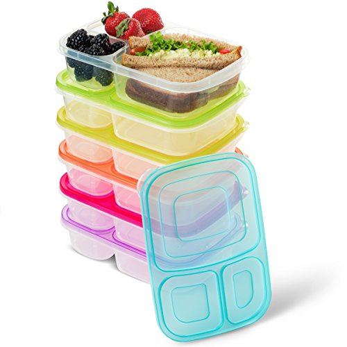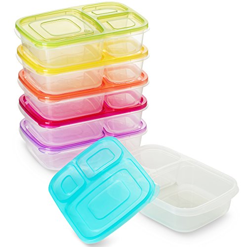 BloominGoods 3 Compartment Bento Lunch Box Containers | (Pack of 6) Reusable Meal Prep Containers | Perfect for Work, School or Outdoor Activity | Leak-Proof, Dishwasher & Microwave Safe