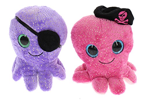 -. Feature : Bundle of 2 plush stuffed animals - Olee the octopus pirates / The friendly gold glitter spotted pink & purple octopi wear pirate garb / Measures 5.5" tall x 5" wide / Soft, hand washable polyester surface perfect for cuddling