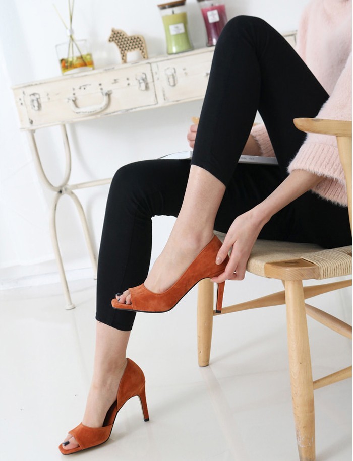 商品名:パンプス レディース オープントゥ ピンヒール スエード調 2018 春 ファッション 靴 婦人靴