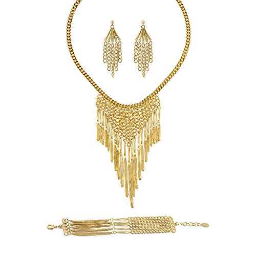 -. Feature : METAL: gold flashed base metal, high polished finish. / STYLE: This 3-piece bracelet, earrings and necklace set is crafted with rich, alternating chains in slinky silhouettes.