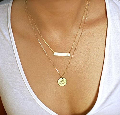 -. Title : Layering Necklace, Gold Bar Necklace, Name Plate Necklace, Hammered Disc Necklace, Personalized Nameplate Necklace, Layered Necklace Set