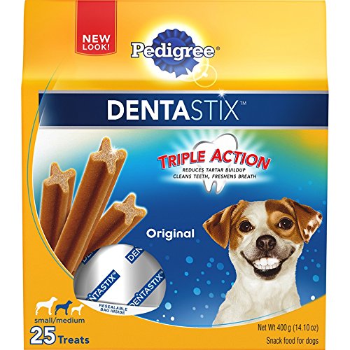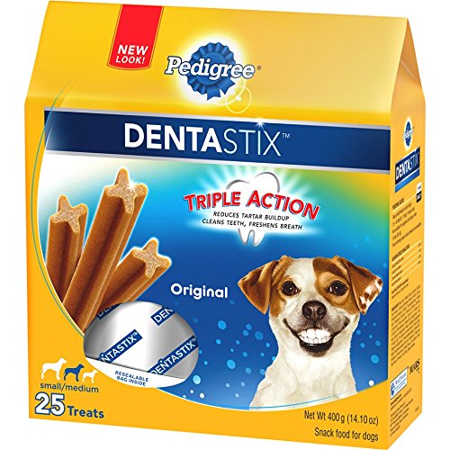 Contains (1) 25-count pack of PEDIGREE DENTASTIX Original Small/Medium Treats for Dogs