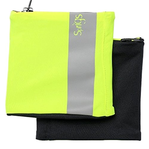 Sprigs Reflective Yellow on Black Banjees Polyspandex Reversible Wrist Wallet