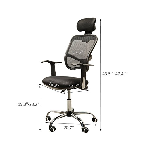 -. Brand : HOMCOM -. Feature : Comfortably padded seat and mesh back give breathable yet supportive chair / Find the support you need for your back and neck / Adjustable and lockable tilt so you can control where you sit / Height adjusts for different sized legs / Overall: 61"W x 20.7"D x 43.5" - 47.4"H -. Label : HomCom -. Manufacturer : HomCom -. PackageQuantity : 1 -. ProductGroup : Furniture -. ProductTypeName : HOME_FURNITURE_AND_DECOR -. Publisher : HomCom -. Studio : HomCom -. Title : HomCom Adjustable Mesh High Back Computer Desk Office Task Chair w/ Headrest