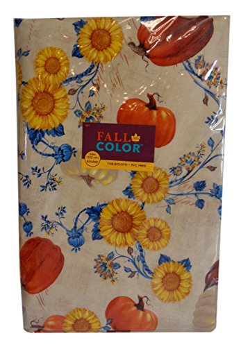 Product DescriptionAutumn Sunflower PEVA Vinyl Tablecloth, 60" Round, Pack of (3). Fabric Contents: Surface: PEVA, Flannel Back: Polyester. PVC Free.0